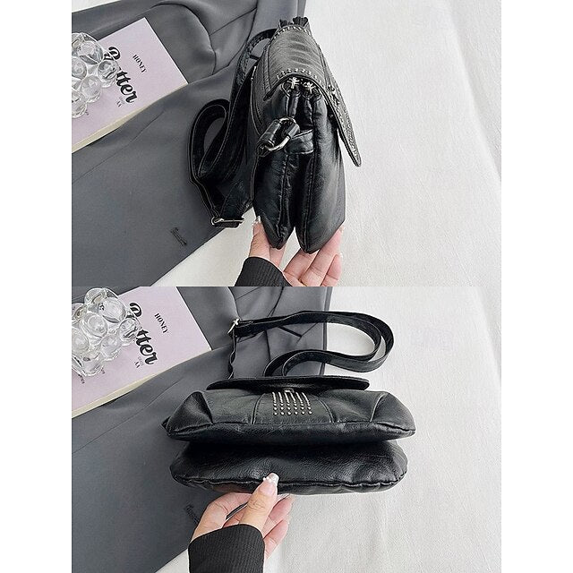 Gender: Women's, Type: Crossbody Bag, Shoulder Bags, Material: PU Leather, Embellishment: Rivet, Zipper, Multiple pockets, Pattern: Solid Color, Detachable strap: Non-Detachable, Adjustable strap: Adjustable, Occasion: Office, Casual Daily, Width (cm): 5, Height (cm): 20, Length (cm): 23, Function: Waterproof, Large Capacity, Category: Crossbody Bag,