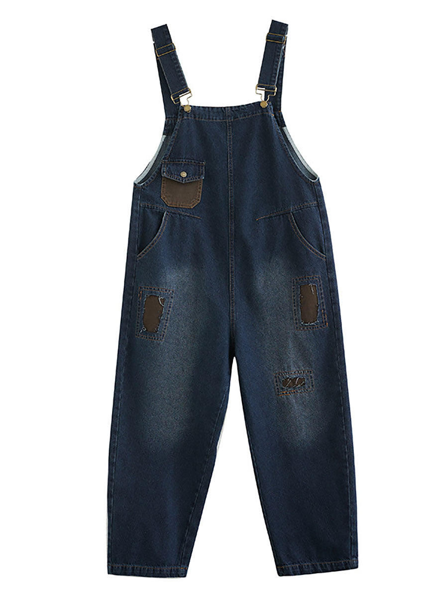 Women Autumn Retro Patchwork Denim Pocket Jumpsuits AI1048