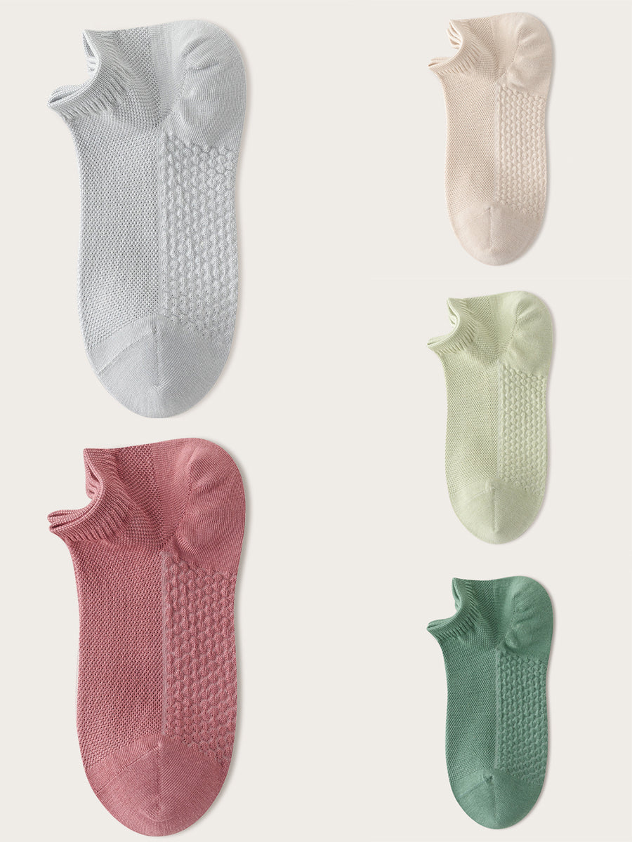 Women Color 5 Cotton Casual Pairs Socks Pure