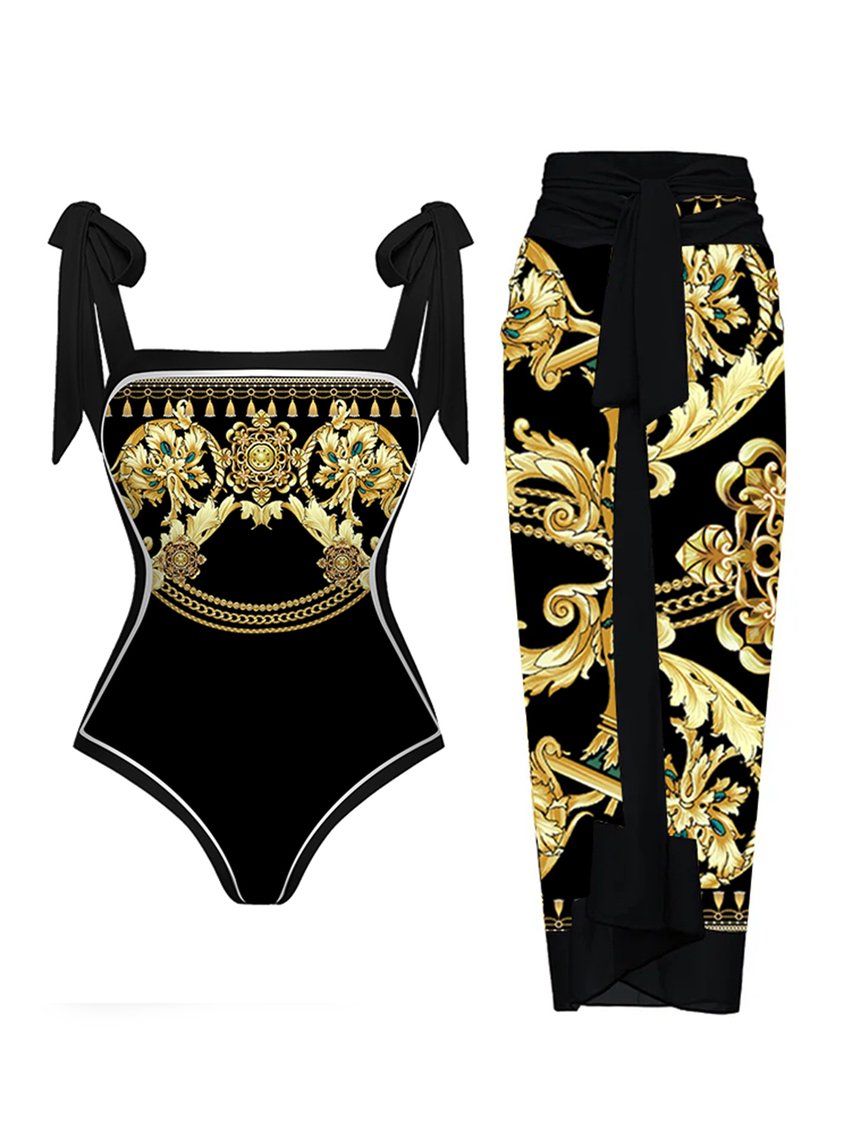 Product Title :Vacation Ethnic Printing Scoop Neck One Piece With Cover Up