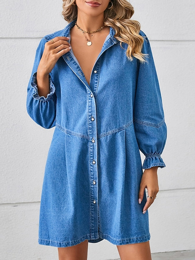 Women's Denim Dress Mini Dress Button Casual Shirt Collar
