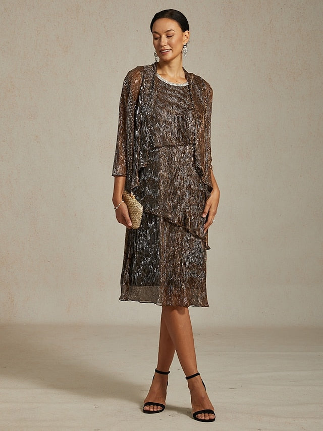 Tops Type: Evening Tops, Fabric: Chiffon, Polyester, Gender: Women's, Occasion: Going out, Business Attire, Evening Party, Wedding Guest, Semi Formal, Cocktail Attire, Formal Wear, Design: Layered, Pleated, Metallic, Style: Stylish, Wedding, Romantic, Dressy, Category: Jacket, Fit Type: Regular Fit, Sleeve Length: 3/4 Length Sleeve, Elasticity: Stretchy, Look After Me: Wash with similar colours, Machine wash, Pattern: Solid Color, Season: Winter, Fall, Summer, Spring,