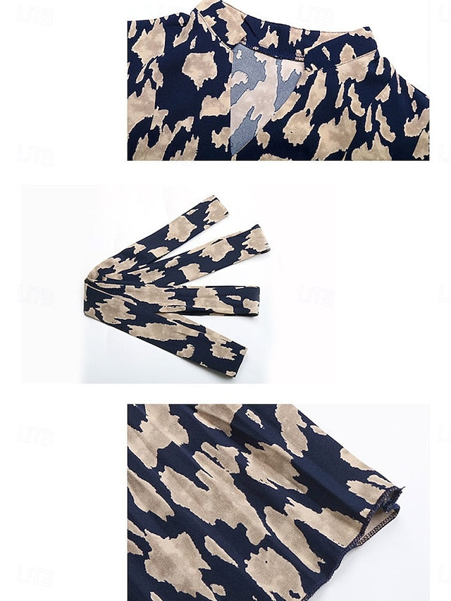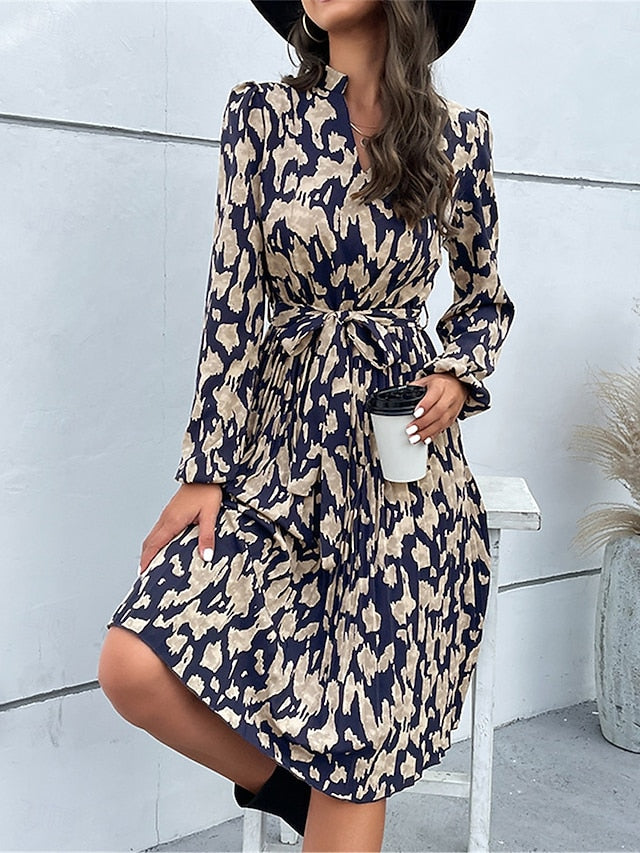 Women's Floral V Neck Midi Dress Long Sleeve Spring Fall