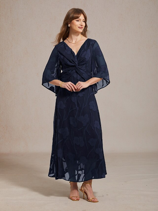 Dresses Type: Chiffon Dress, Fabric: Polyester, Gender: Women's, Design: Lace up, Occasion: Wedding Guest, Daily, Vacation, Style: Elegant, Dress Length Type: Maxi Dress, Neckline: V Neck, Details: Lined, Sleeve Length: 3/4 Length Sleeve, Elasticity: Micro-elastic, Look After Me: Wash with similar colours, Machine wash, Pattern: Floral, Season: Fall, Summer, Spring,