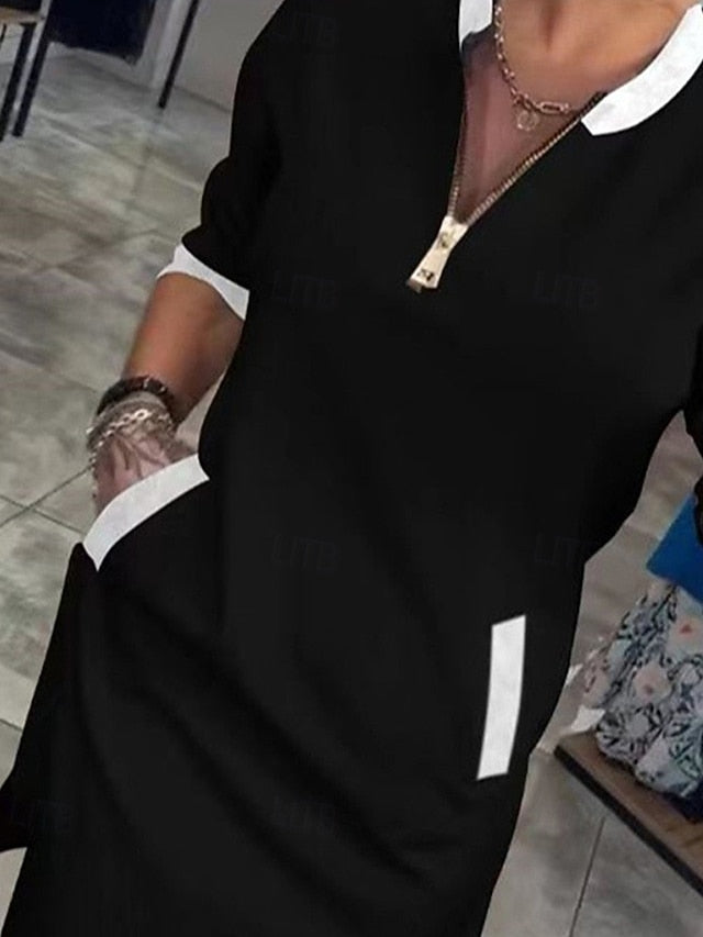 Dresses Type: Casual Dress, Fabric: Polyester, Gender: Women's, Design: Pocket, Zipper, Patchwork, Occasion: Daily, Going out, Weekend, Style: Modern, Fit Type: Regular Fit, Dress Length Type: Mini Dress, Neckline: V Neck, Sleeve Length: 3/4 Length Sleeve, Elasticity: Inelastic, Look After Me: Hand wash, Machine wash, Pattern: Color Block, Season: Fall, Spring,