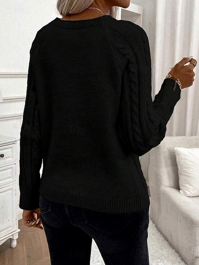 Women's Sweater Casual Soft Pure Color Cable Crew Neck