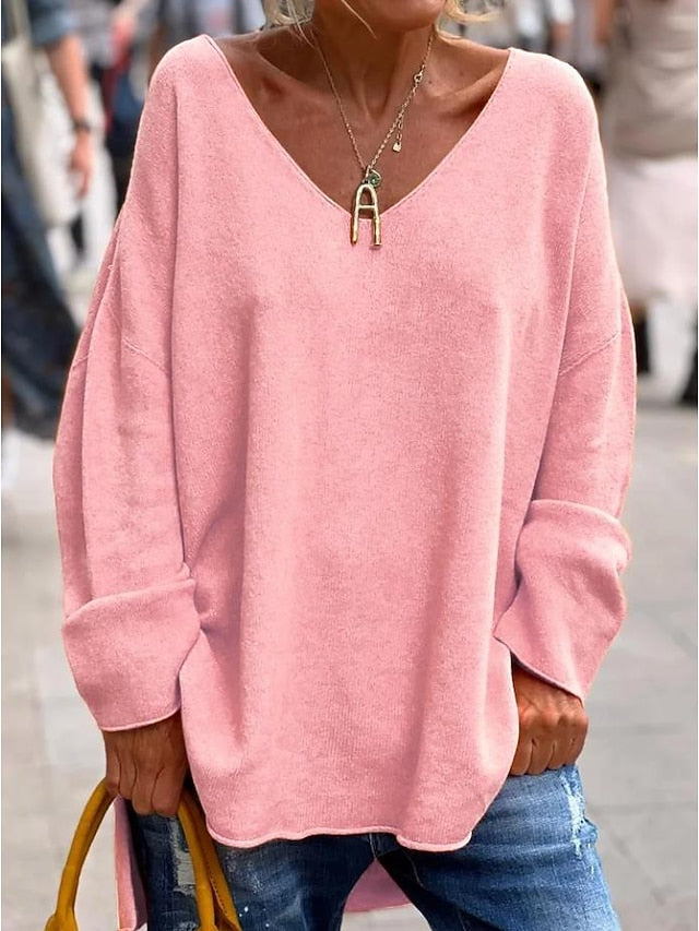 Gender: Women's, Style: Basic, Sports, Neon & Bright, Occasion: Street, Casual, Neckline: V Neck, Fabric: Polyester, Sleeve Length: Long Sleeve, Elasticity: Micro-elastic, Look After Me: Machine wash, Wet and Dry, Washable, Top Length: Long Tops, Pattern: Plain, Season: Fall & Winter, Details: Top, Fit Type: Loose Fit, Special Size: Oversized,